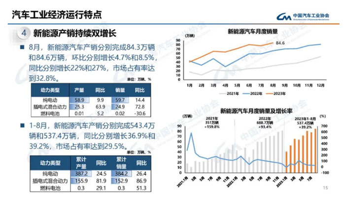 近两年大家愈发可以看到电动车及汽车智能化的发展趋势,据有关部门统计,2023年1-8月新能源车新车渗透率已超30%,具体数据如下: